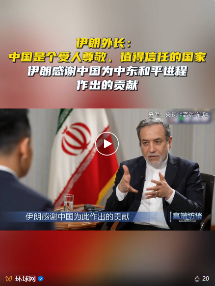 《高端访谈》专访伊朗外长阿拉格齐。