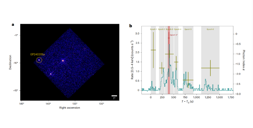 此后,世界各地多个天文望远镜陆续观测到EP240315a。研究结果表明,EP240315a产生于遥远的早期宇宙,当时宇宙年龄仅为现在的10%,EP240315a的信号花费了125亿年才抵达地球。
