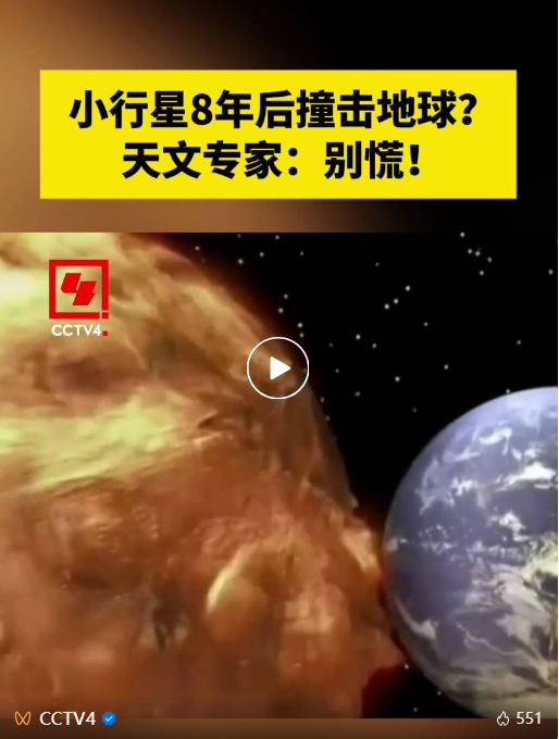 最近,一颗编号为“2024 YR4”的小行星“可能会在8年后撞击地球”在网络上引起热议。
