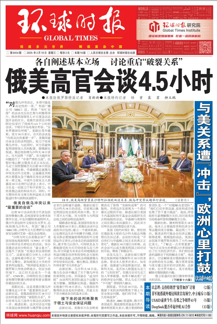 “对俄乌冲突而言,本周可能是决定性的一周。”英国广播公司(BBC)说,两场“匆忙安排”的会谈先后在巴黎与利雅得举行。欧洲多国领导人17日紧急在法国开会的次日,美俄代表团在沙特阿拉伯举行了持续约4.5个小时的会谈,卡塔尔半岛电视台形容,“全世界都屏住呼吸”。美联社等外媒称,美方18日表示,当天的会谈是“向前迈出的重要一步”,美俄同意任命各自的谈判团队,致力于结束俄乌冲突。与此同时,双方同意恢复两国使馆人员的配置。据俄新社报道,俄总统助理乌沙科夫18日表示,当天谈得“不错”,双方就所有问题进行了“非常严肃的交流”,但暂时难以断言俄美关系正在拉近。乌克兰及欧盟隔空关注着18日的会谈。美联社称,华盛顿最近就俄乌冲突发动外交攻势,让基辅及其欧洲主要盟友急于确保自身在谈判桌有一席之地。中国外交部发言人郭嘉昆18日在例行记者会上表示,中方乐见一切致力于和平的努力,包括美俄达成的和谈共识。同时,中方期待所有当事方和利益攸关方都能适时参与到和谈进程中。