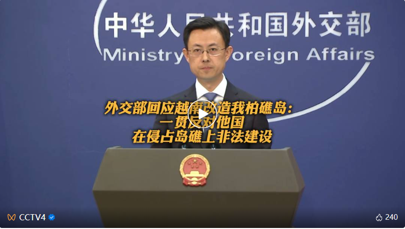 外交部回应越南改造我柏礁岛:一贯反对他国在侵占岛礁上非法建设。