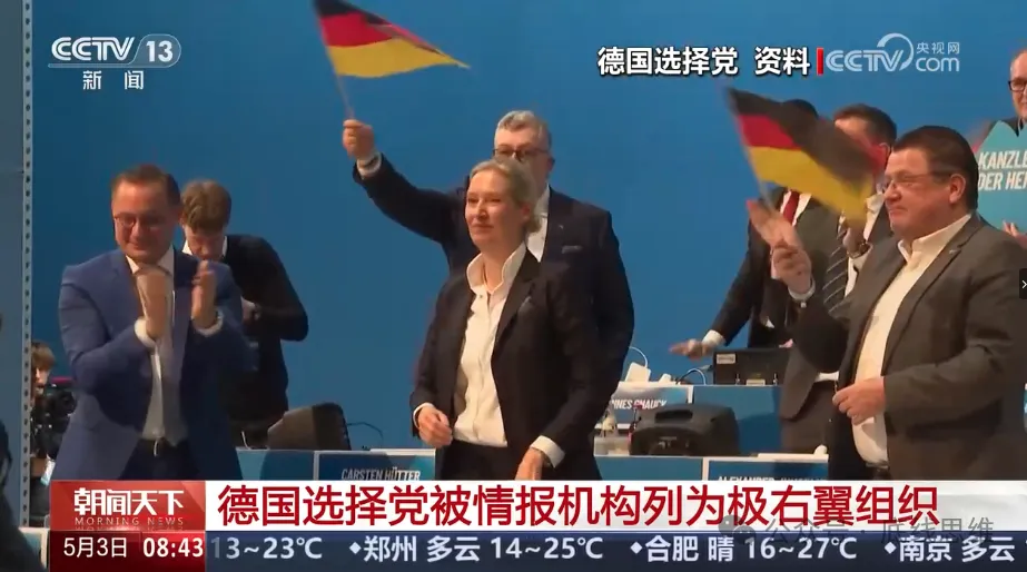 德国联邦宪法保卫局5月2日宣布,已将德国选择党列为明确的极右翼组织,将在联邦层面对该党进行监控。