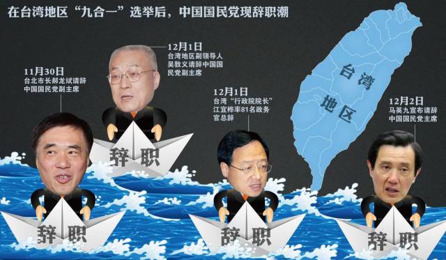 周六(11月29日),台湾“九合一”选举落下帷幕,国民党惨败,马英九于今天宣布将辞去党主席职务。自2001年以后较稳定的所谓“北蓝南绿”状态被打破。