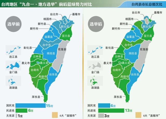 台湾地区“九合一·地方选举”前后蓝绿势力对比