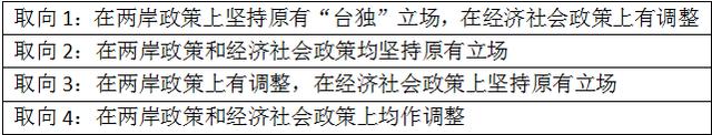 取向1:在两岸政策上坚持原有立场,在经济社会政策上有调整