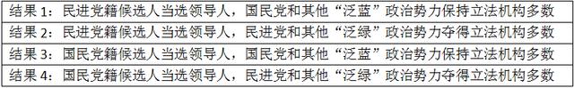 依照台湾政治的惯性,出现“结果4”的可能性很低。出现“结果1”和“结果2”的可能性最高。