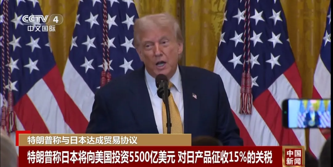 当地时间7月22日,美国总统特朗普宣布美日达成贸易协议:原定25%的对等关税税率将下调至15%,日本将向美国投资5500亿美元并放开大米等农产品市场。(19%和15%!特朗普宣布两大贸易“成果”)