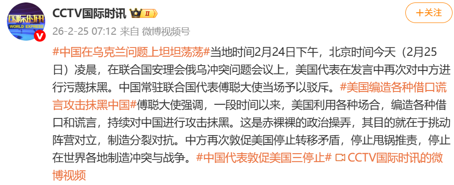 当地时间2月24日下午,北京时间今天(2月25日)凌晨,在联合国安理会俄乌冲突问题会议上,美国代表在发言中再次对中方进行污蔑抹黑….!