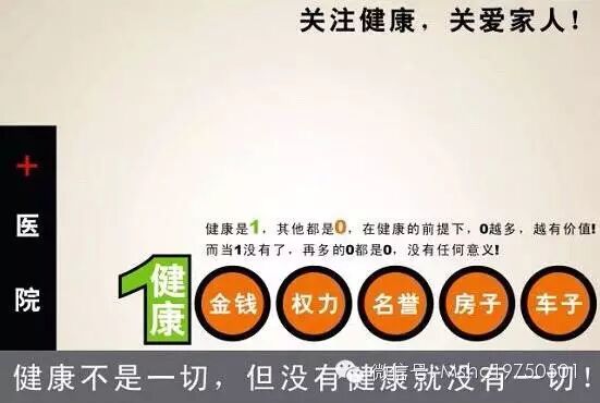 健康是1,妻子、孩子、位子、票子、房子、车子……是0,0在多,1没有没了,就什么都没了。