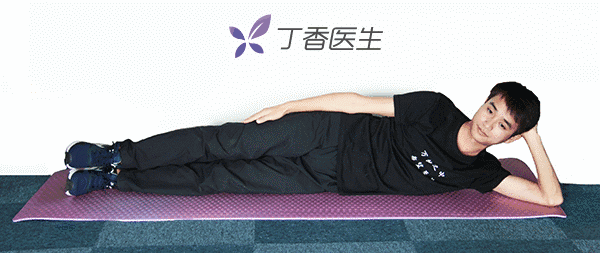 侧躺在垫子上,交替将双下肢伸直上抬