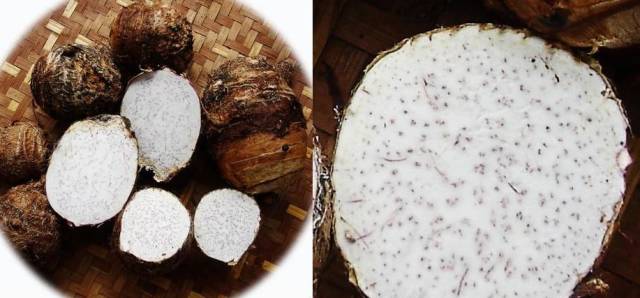 最好吃的槟榔芋头断面是有紫褐色的点点的,大家可以通过这一点来辨别。