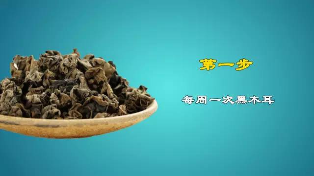 第一步,每一周吃黑木耳一次,降血脂,抗血栓;