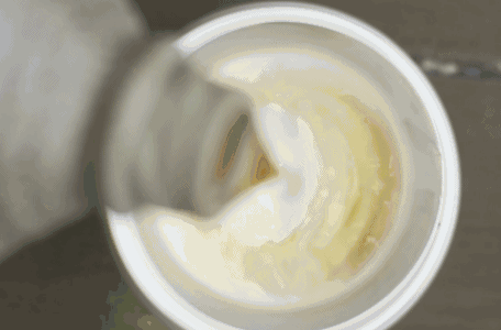 3.蛋液中加入温黄酒+温水,即刻混合均匀,温度只须微温,大约人体皮肤温度即可;