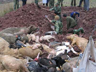 4.妥善处理动物尸体。鸡鸭猪等禽畜尸体极易腐烂变质,应禁止宰割食用,应用漂白粉或生石灰处理后进行深埋。