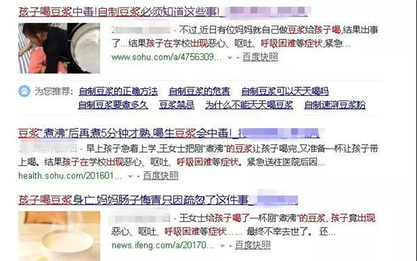 而类似事件在过去也屡屡发生,中毒对象多以儿童为主,且均是在饮用了家庭自制的豆浆之后出现了不同程度的中毒症状。