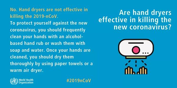 无效。干手器不能有效杀死新型冠状病毒。为了防止自己感染新型冠状病毒,应该经常用含酒精成分的免洗洗手液或用肥皂和水洗手。将手清洗干净后,用纸巾彻底擦干或用暖风干手器彻底烘干。
