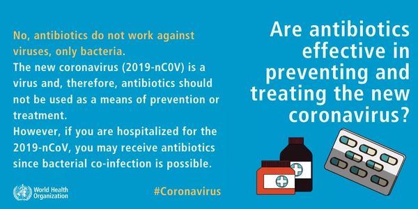 新冠病毒是一种病毒,因此不应将抗生素用作预防或治疗手段。然而如果你因新冠病毒住院,你可能会接受抗生素治疗,因为有可能同时感染细菌。