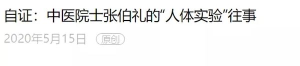 文章中将张伯礼院士于1996年到2004年对马兜铃酸及含有马兜铃酸的药材断章取义,指出张伯礼院士在回顾性研究和动物性实验认定关木通有毒性的前提下,还对10名患者做“人体实验”。