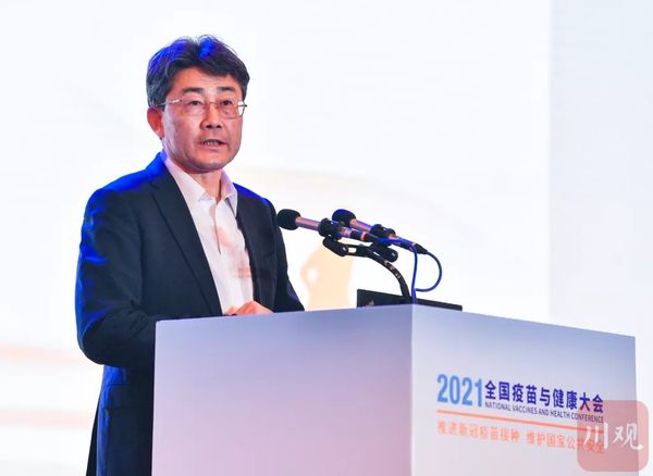 4月10日,中国疾病预防控制中心主任高福院士在2021年全国疫苗与健康大会上作报告。(图源:川观新闻)