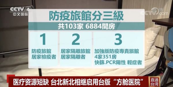 台湾本土疫情升温,确诊人数最多的台北市和新北市,医疗资源窘于应付,病床数严重不足。21日,台北市和新北市相继宣布征用大型旅馆作为集中检疫所,专门收治轻症及无症状确诊者,也就是建立“台湾版方舱医院”。
