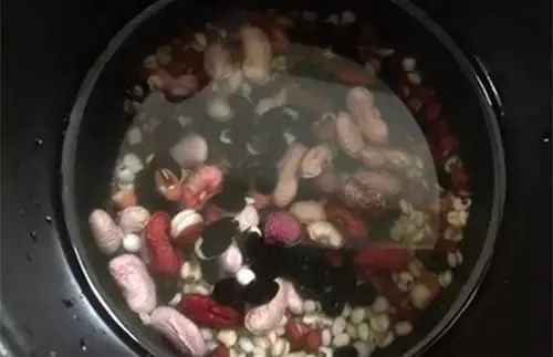 1. 淘洗干净黑米、黑豆、薏米、糙米,加足清水浸泡一天。