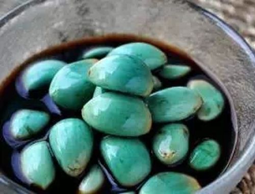 8.这是泡了7天后的样子,大约有一半左右的蒜开始变绿。