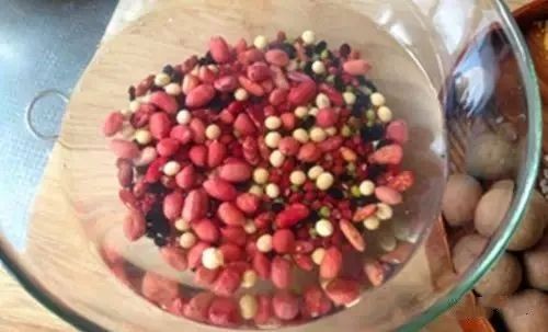 2、花生米、莲子、红枣、绿豆、红豆分别浸泡20分钟备用。