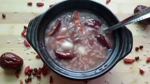中医认为红枣有补血补气的功效,同时在做腊八粥时红枣中含的糖可以为腊八粥改善口感,喝起来甜甜糯懦的。
