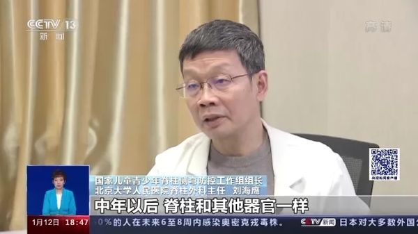 国家儿童青少年脊柱侧弯防控工作组组长、北京大学人民医院脊柱外科主任 刘海鹰:中年以后的话,脊柱和其他器官也一样,都在发生老化,有的就是产生的一种成人性的退变性的脊柱侧弯,脊柱的变形、增生,会造成椎管的狭窄,进而产生腰疼和下肢的这些症状。