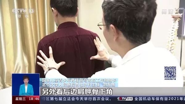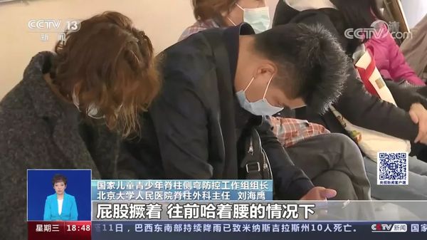 国家儿童青少年脊柱侧弯防控工作组组长、北京大学人民医院脊柱外科主任 刘海鹰:脊柱侧弯是脊柱偏离正常的中线产生的一个畸形,还伴随着脊柱的旋转,跟拧麻花似的,它是一个旋转,还有一个就是侧面的后突,整个来说的话,才叫脊柱侧弯。