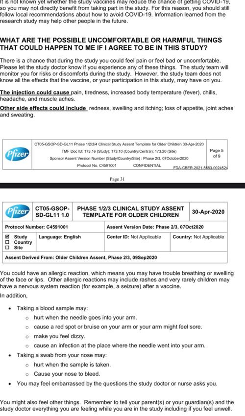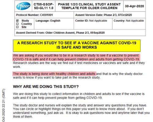 我们不需要任何辉瑞(Pfizer)公司的文件来证实这一点,从一开始就很清楚这些疫苗是人体实验,并且在2年后仍在发生,第4剂及更多剂量正在进行中。