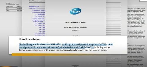 但是在结论中,文件说最终疗效结果表明,有或没有被先前感染过的证据,辉瑞疫苗为都为参与者提供了保护。
