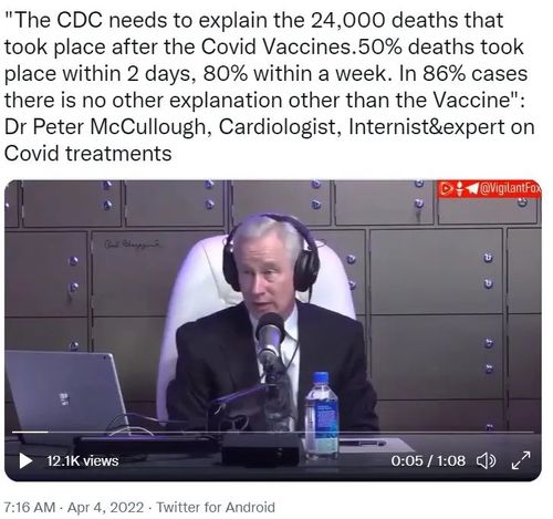 Dr. Peter McCullough之前就论证了疫苗是死亡激增的罪魁祸首: