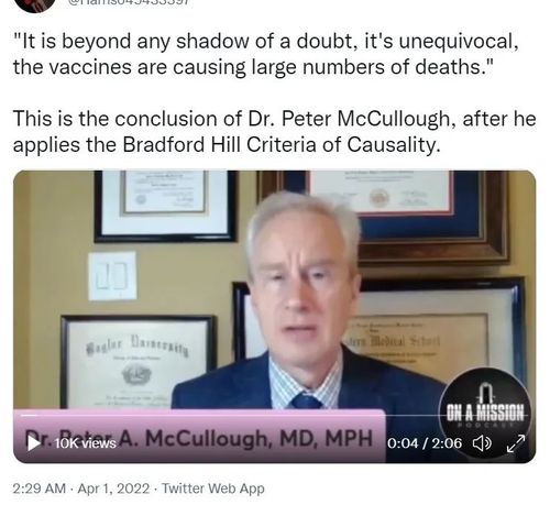 这是Peter McCullough博士应用Bradford Hill Criteria of Causality准则后得出的结论。