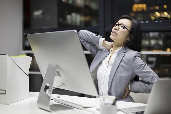 同时,人如果长久保持屈曲的姿势坐在椅子上,腰椎的受力会比站立时增加百分之百,从而加大腰椎间盘突出的风险。