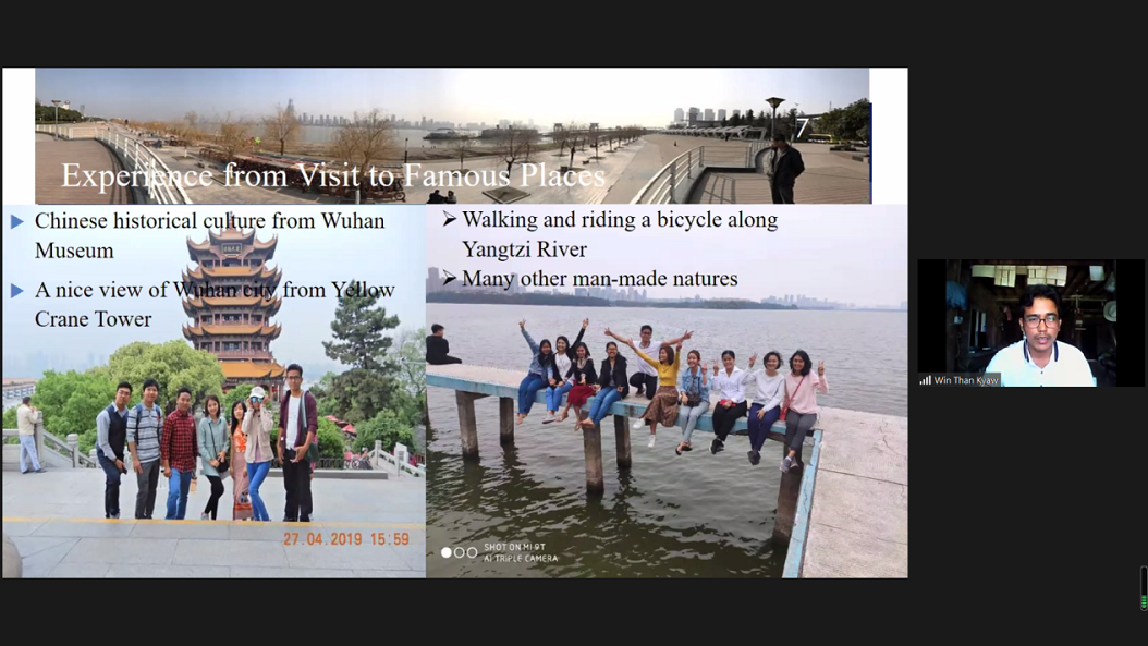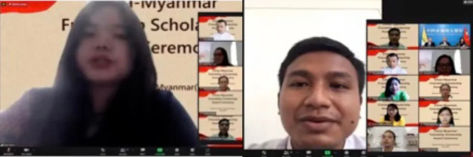 获奖学生代表感谢陈海大使寄予的肯定和鼓励,通过PPT等方式分享了留学期间的感受和收获,表示中缅友好奖学金是对缅甸留华学生的鞭策,衷心感谢中方在抗疫等方面向缅甸国家和人民提供的援助和支持。留华学生群体将继续关心中缅关系,为中缅友好发挥应有作用。