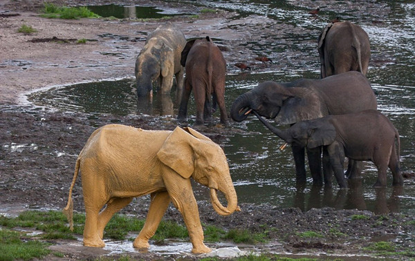 独树一帜!中非大象泥浴后变“黄金象”(组图)