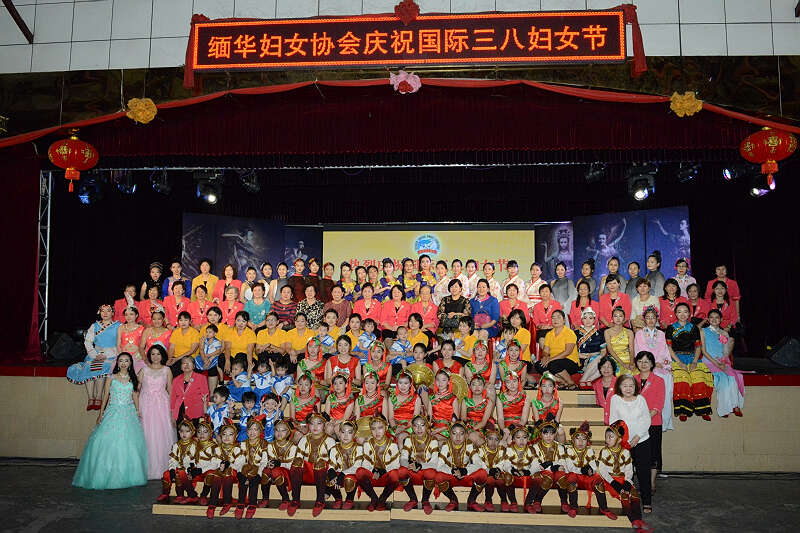 缅华妇女协会从1946年6月1日成立以来,每逢3月8日都举行隆重的联欢晚会庆祝国际三八妇女节,缅华妇女协会共有两千多名会员,是缅甸华社里人数最多的一个大团体,她致力于团结妇女姐妹,重视华文教育,在缅甸首创中缅英三语教育的幼儿班,丰富了缅甸华文教育的内容,便利了家长。在社会上受到普遍的赞扬好评。