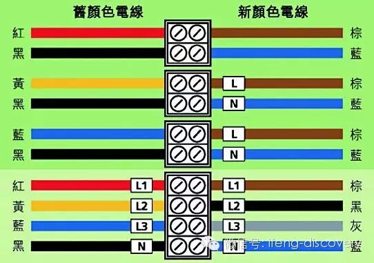 现在的美国,接地线是绿色、黄绿条纹或是裸线,中性线应该是白色或灰色,电路线可能是黑色、红色、蓝色、黄色、橙色或黄色,具体什么颜色取决于电压。