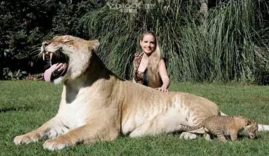 美国迈阿密动物园一只成年狮虎兽长到3.7米长,体重超过了500公斤!狮虎兽异常罕见,截止到2008年2月,全世界只有大约12只。由于是雄狮与雌虎杂交后的产物,因此相貌与狮子相似,但身上长有虎纹。