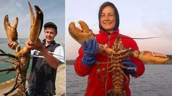 英国男子意外捕到巨型龙虾 巨钳可剪断人手