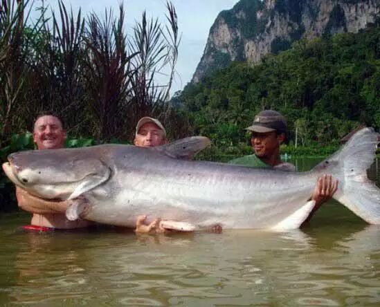 2011年6月,一位退役的英国皇家海军军官用一小块甜玉米做诱饵,成功钓起一条体型巨大的“水中巨怪”,重量超过18英石(约合114公斤)。经过 几乎1个小时的战斗,肯特先生终于将这个庞然大物提上了岸??一条巨大的湄公河鲶鱼。他们赶紧对这条大鱼进行了称重:260磅!这是新的世界纪录!