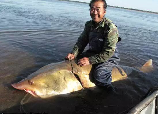 渔民捕获一条重500斤长约3米巨型鳇鱼