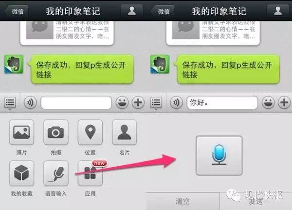 在聊天界面中,点击右下方的“+”,选择“语音输入”,点“麦克风”说话,你说的话就会变成文字,速度非常快。