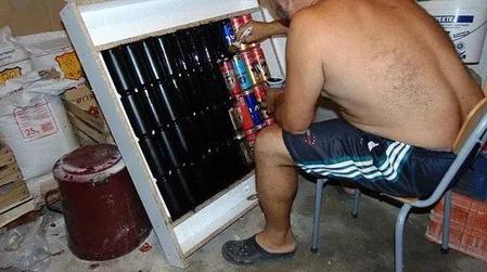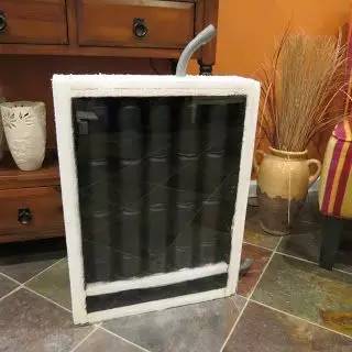为了能从从太阳光中获得更多能量,他改进了自己的发明,将这些啤酒罐都涂成了黑色。