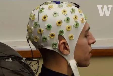 科学实验证实,思维可以传送。图为实验者的思维被转换成脑电波的方式发送出去。