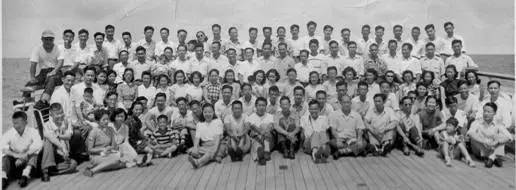 1950年8月31日,100多位中国留学生离开旧金山回国时的合影