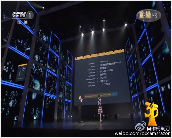 节目组还对加入现场Wi-Fi的观众进行了实验,观众只是打开手机浏览了下常用的打车、订餐、购物等APP,其姓名、地址、身份证号、银行卡号就在大屏幕上显示了出来,打车行程路线和消费习惯也一览无疑,参与实验的现场观众感到非常不安,自己简直就是一个透明人。