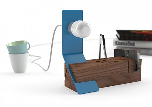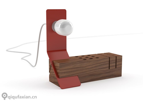 “EDI”有一个实木底座(胡桃木),除了支撑灯体,它还是一个收纳底座,是笔架,还是名片架。三种颜色灯体可以选择,直接从侧面插入实木底座,可以灵活的更换方向,变更你需要的照明区域。