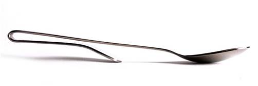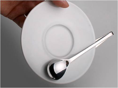 很有意思的设计,将汤匙延长弯曲,就变成了一个带夹子的汤匙。夹在餐盘上让他人看,汤匙没有掉下来,不是魔术,只是夹住了而已。设计很简单,用处还是蛮多的。除了汤匙,还有餐刀和餐叉。设计:Ivan Erkic。